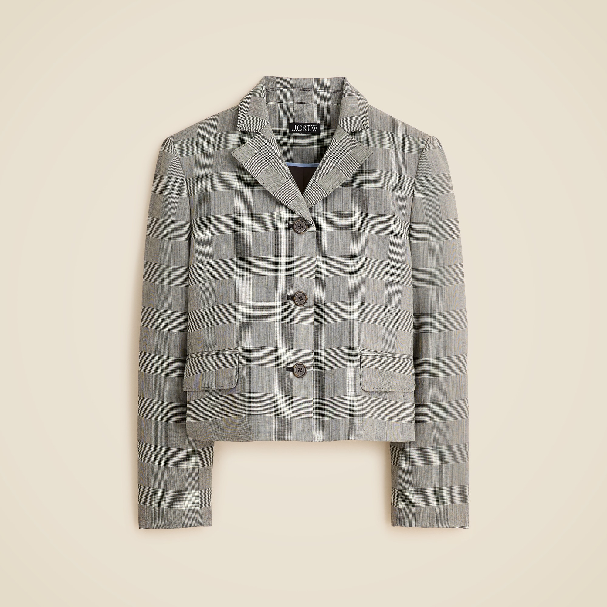 Cropped lady blazer in plaid Italian gauzy wool blend