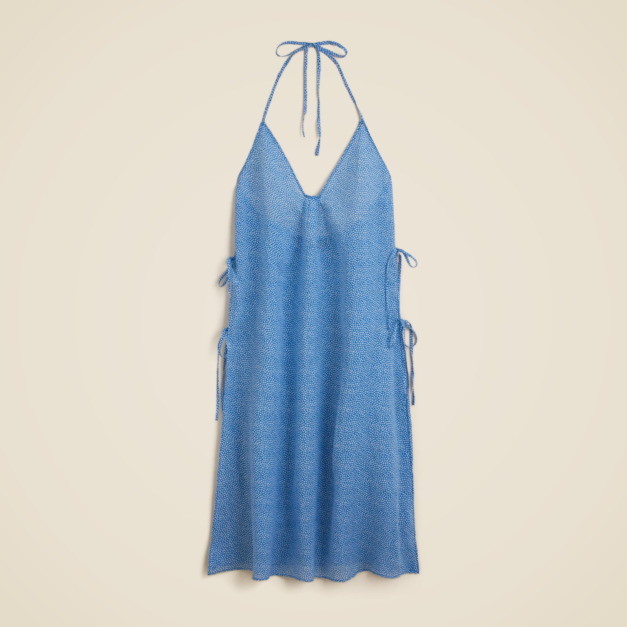 Side-tie midi dress in mini floral-print ramie