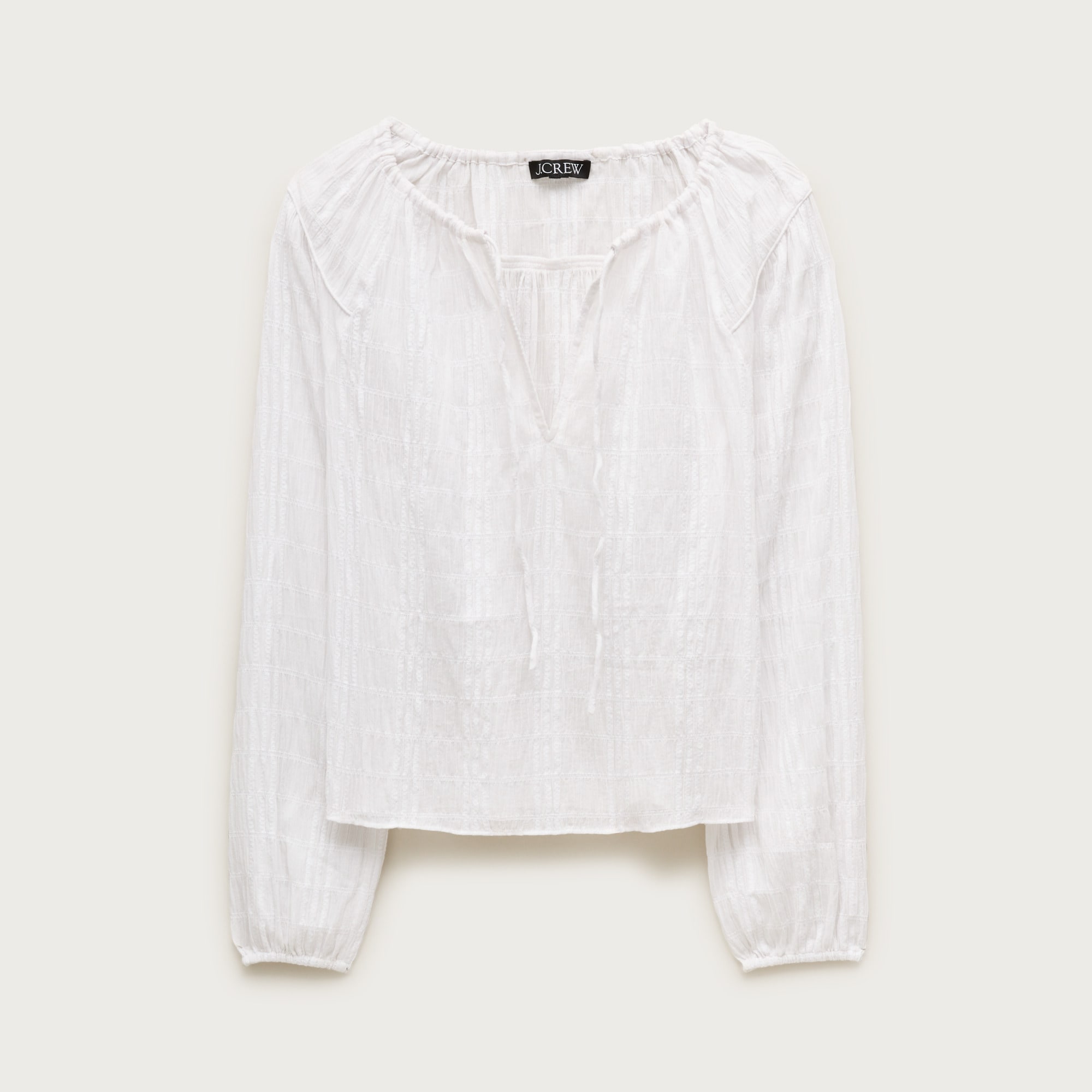 Tie-front popover top in seersucker