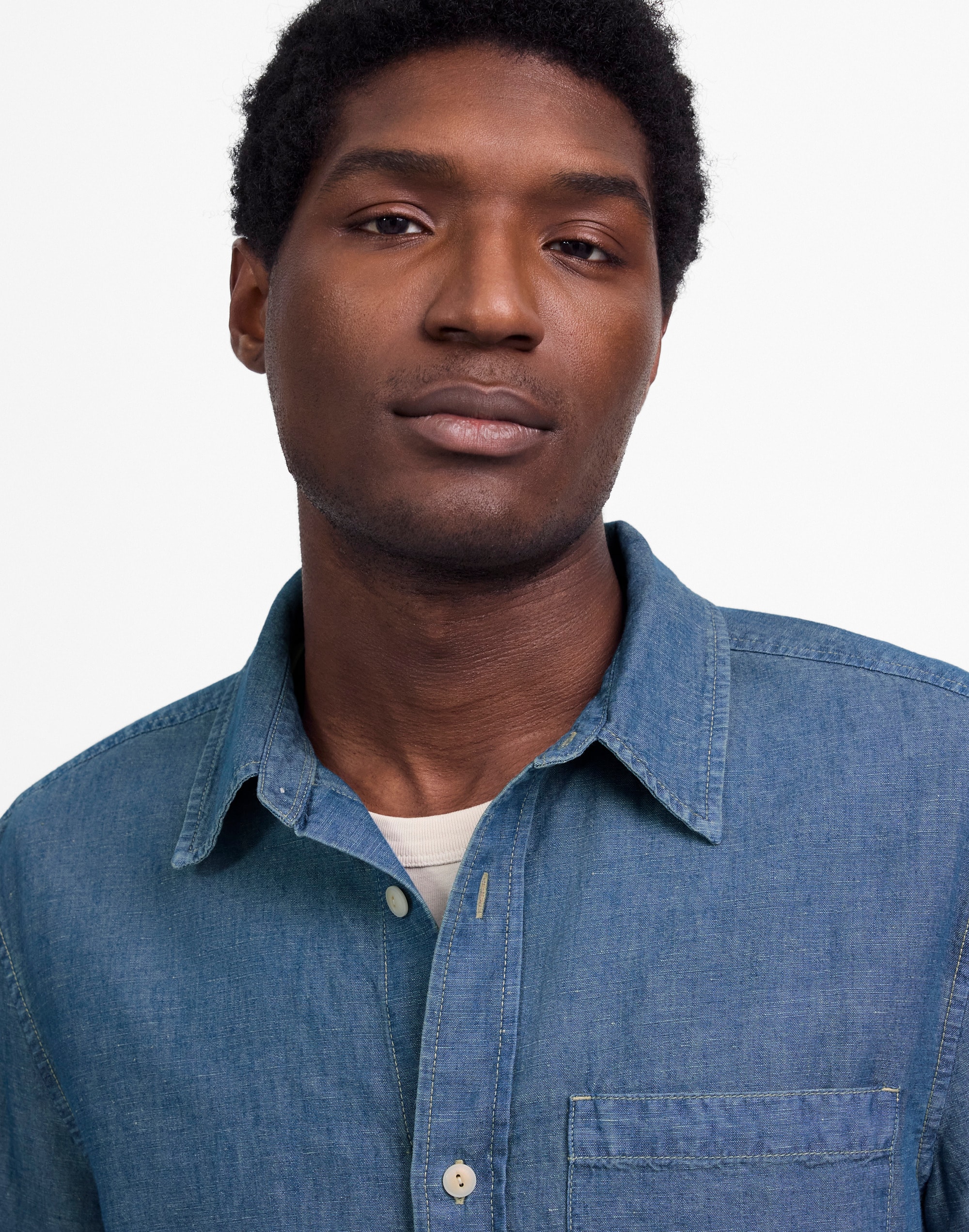 Chambray Button-Up Shirt in Cotton-Linen Blend