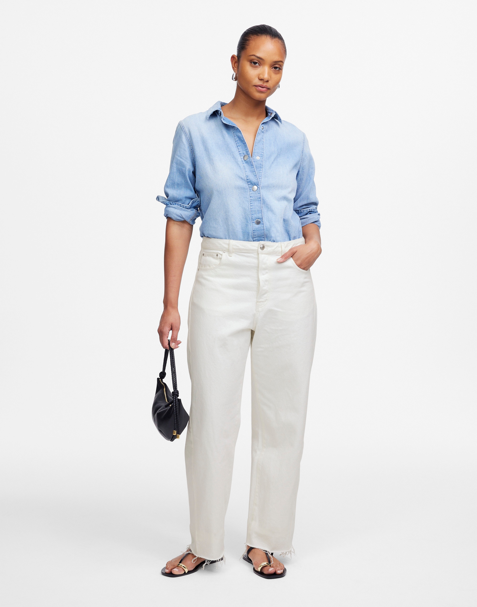 Curvy Pieced Barrel-Leg Jeans in Tile White