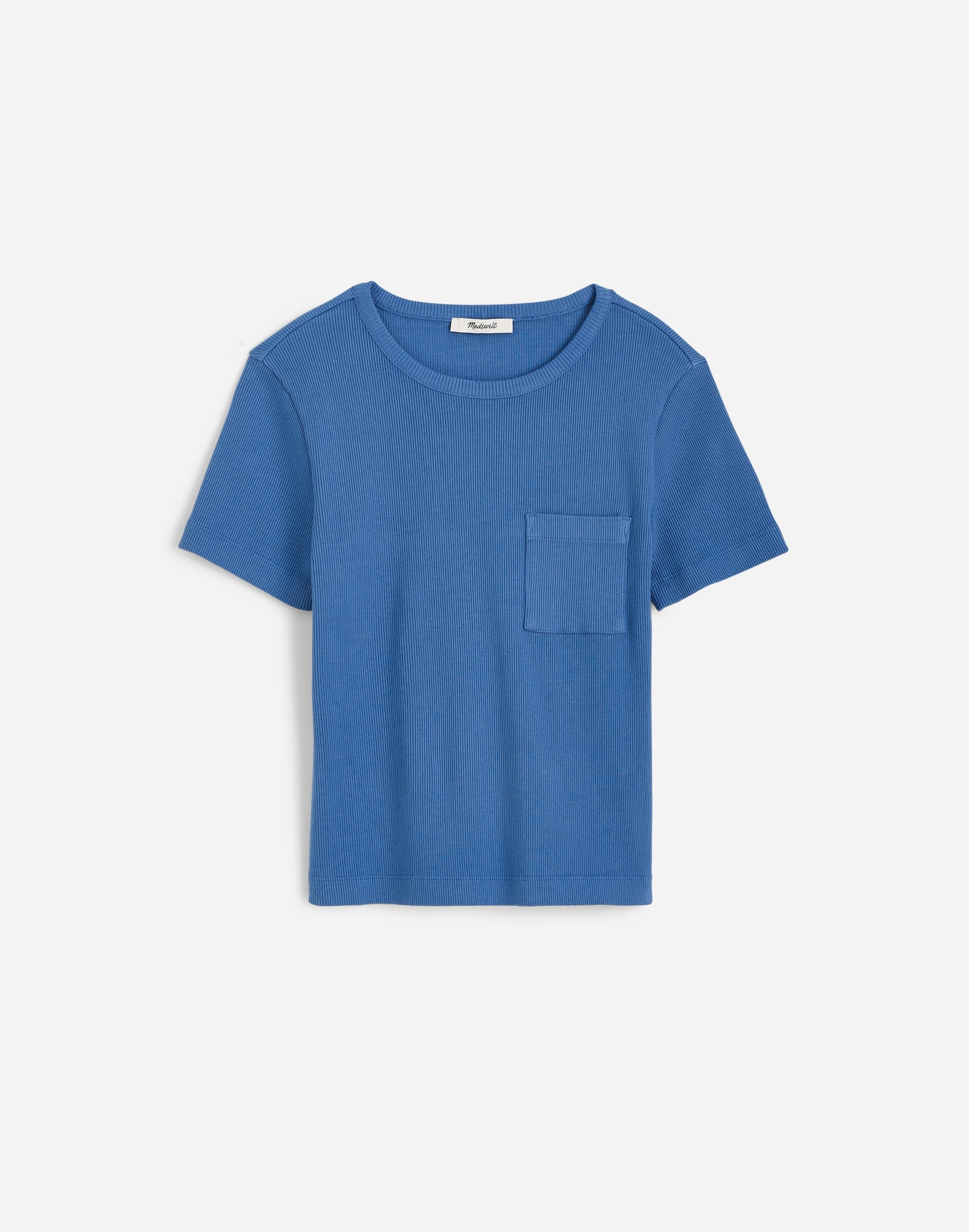 Garment-Dyed Ribbed Crewneck Pocket Tee