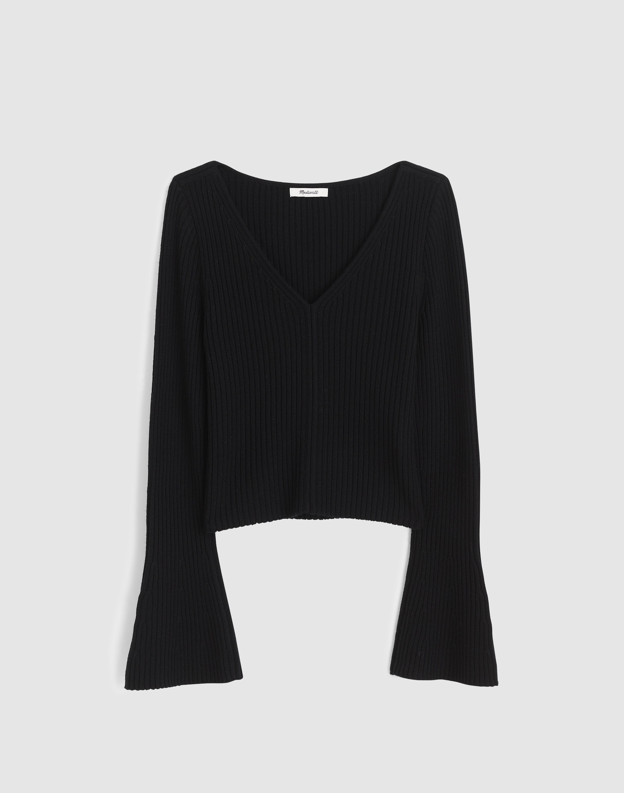 Ribbed V-Neck Sweater Top in Merino Wool