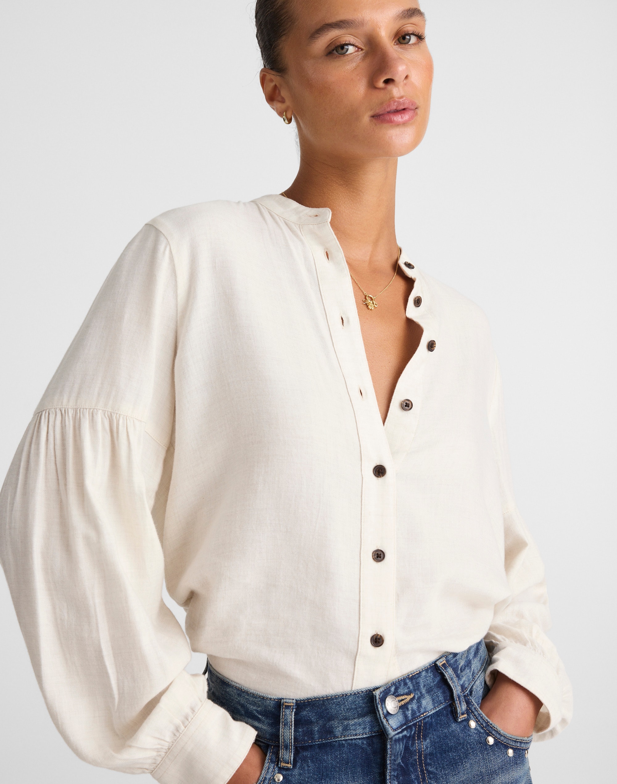 Stand-Collar Button-Up Shirt in Flannel