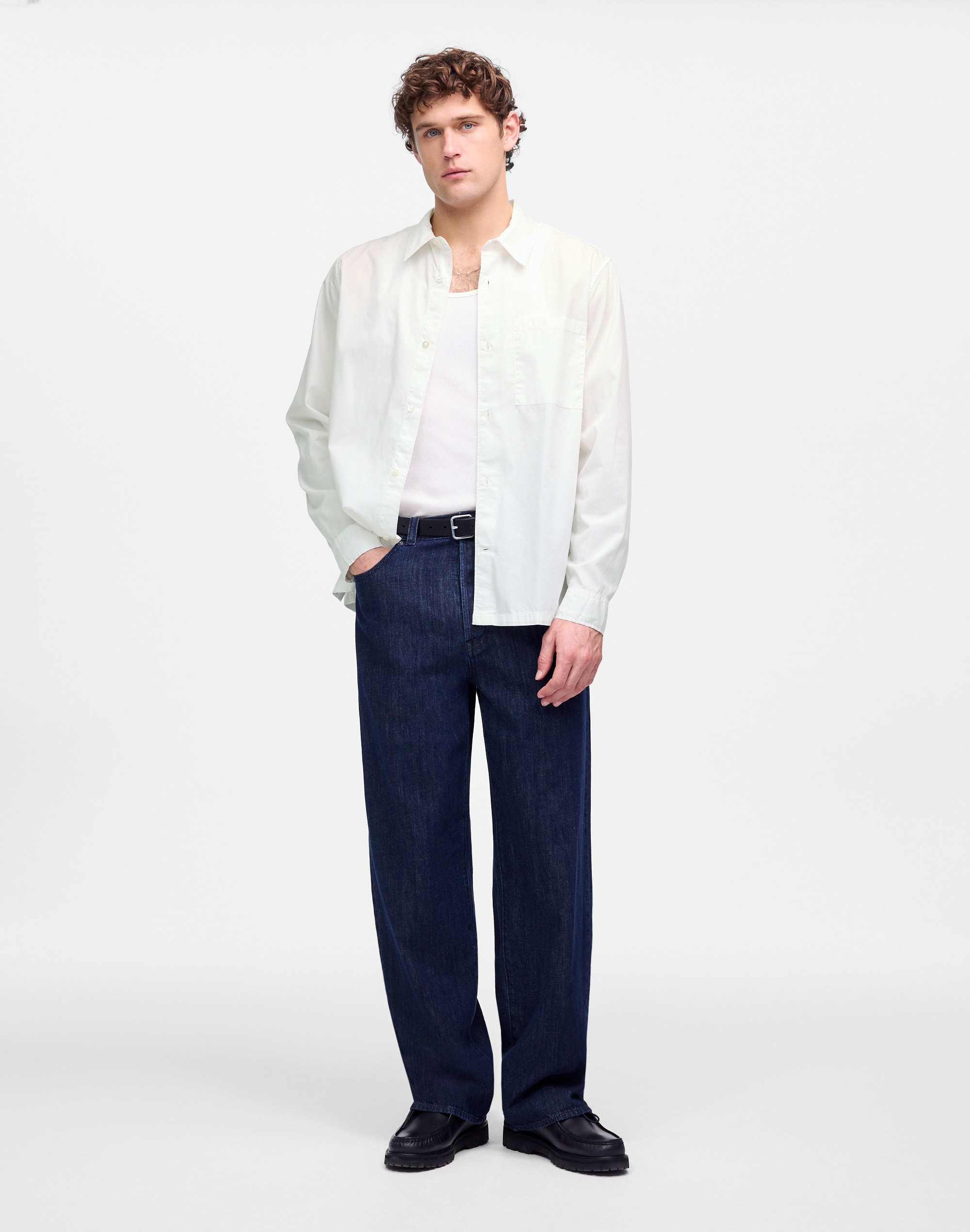 Straight-Hem Cotton Button-Up Shirt