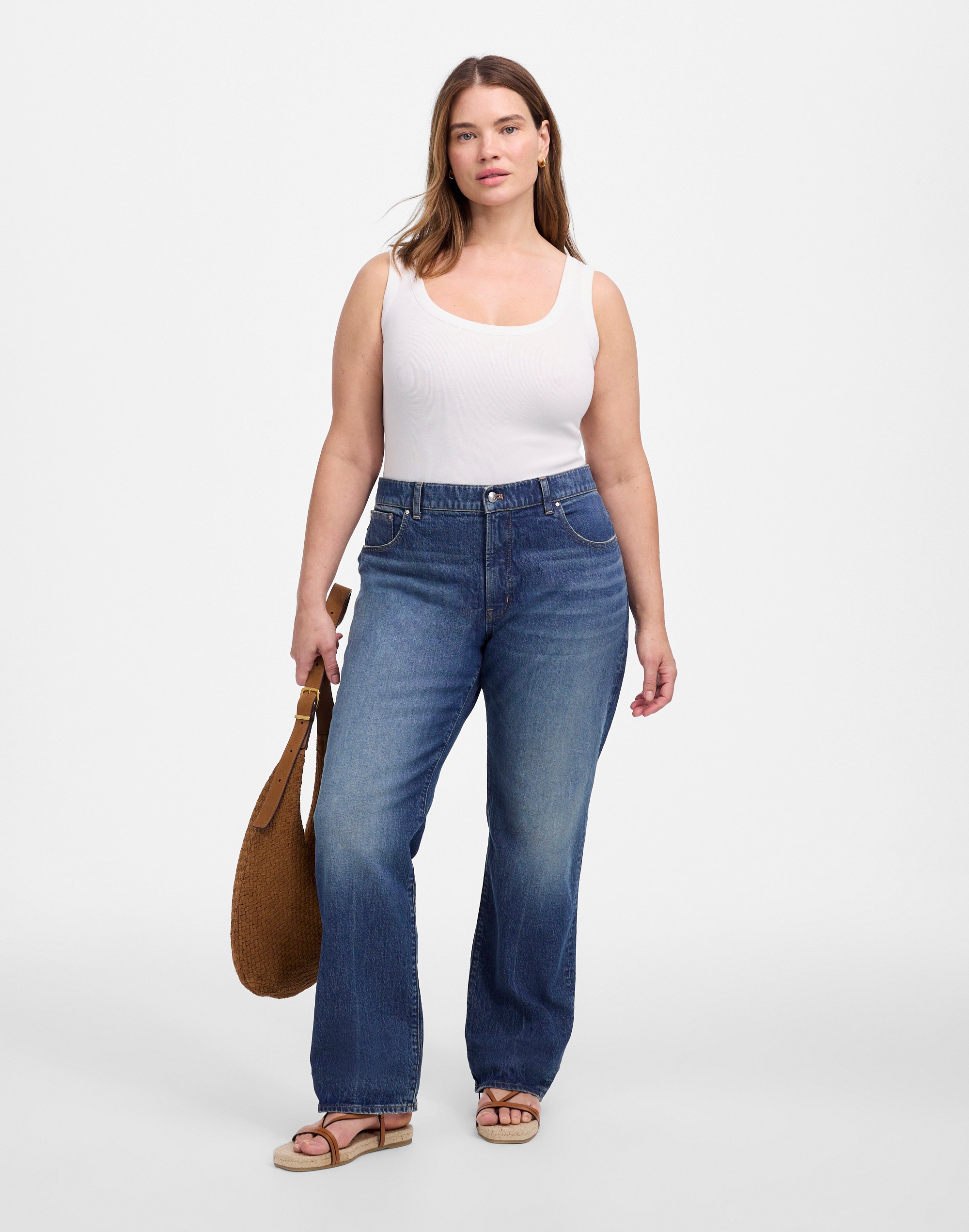 The Plus Curvy Longline Straight Jean in Greendale Wash