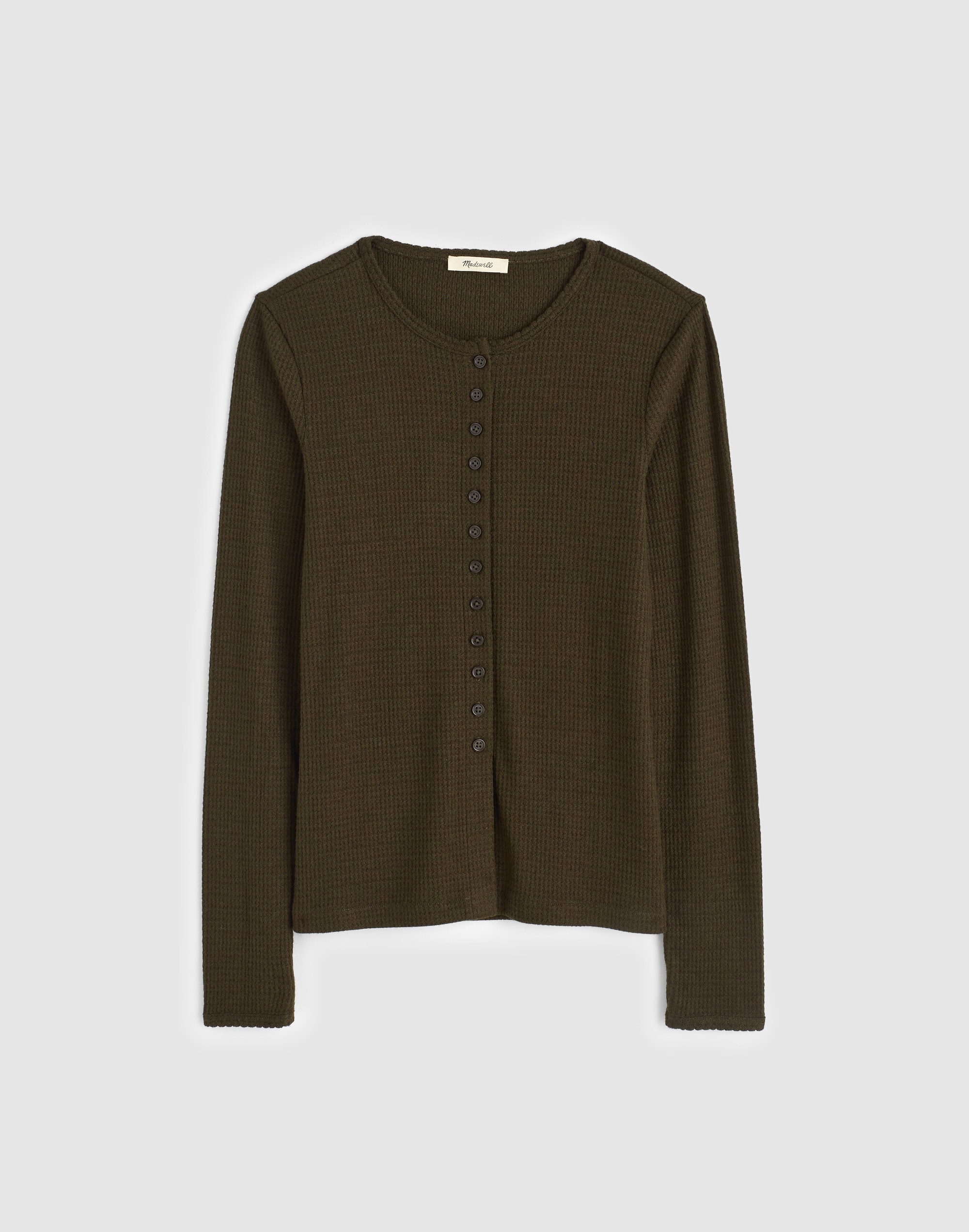 Waffle-Knit Cutaway Crewneck Cardigan
