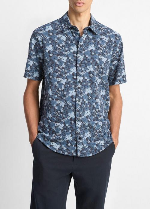 Floral Slub Cotton Short-Sleeve Button-Front Shirt