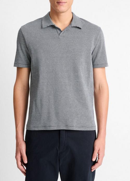 Houndstooth Pima Cotton Johnny-Collar Polo Shirt